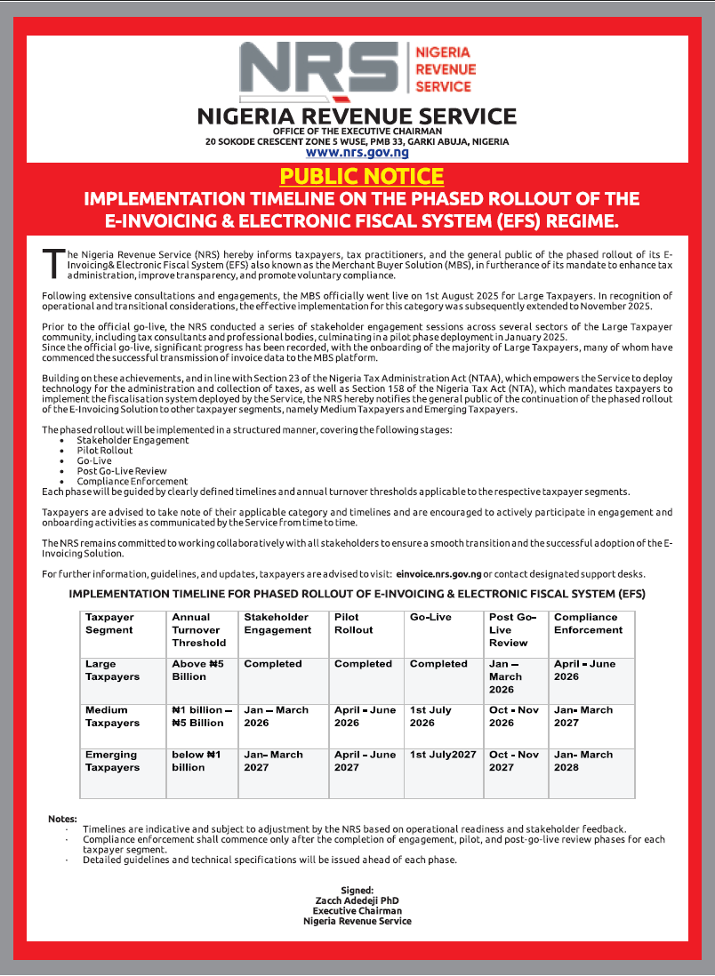 Implementation Timeline on the Phased Rollout of e-Invoicing & EFS Regime